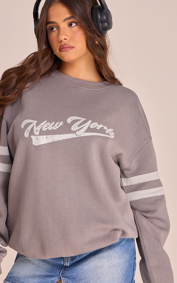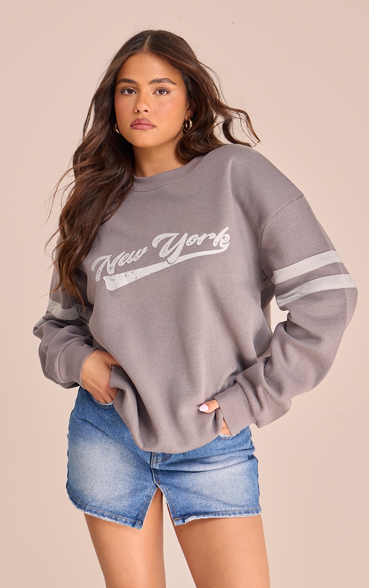 PrettyLittlingething Durcoal New York Varsity Print Sweetshirt