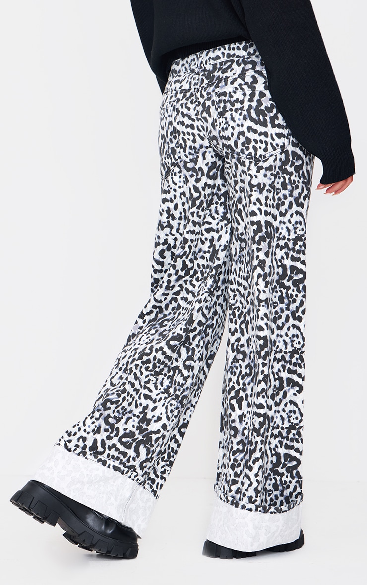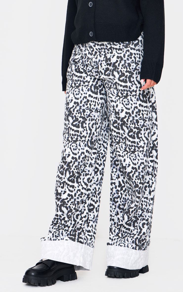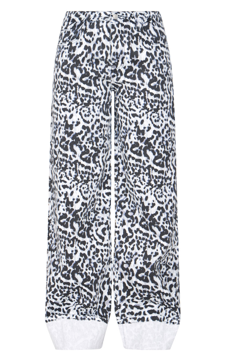 Широкі джинси з біло-чорним леопардовим принтом з підгорнутим краєм