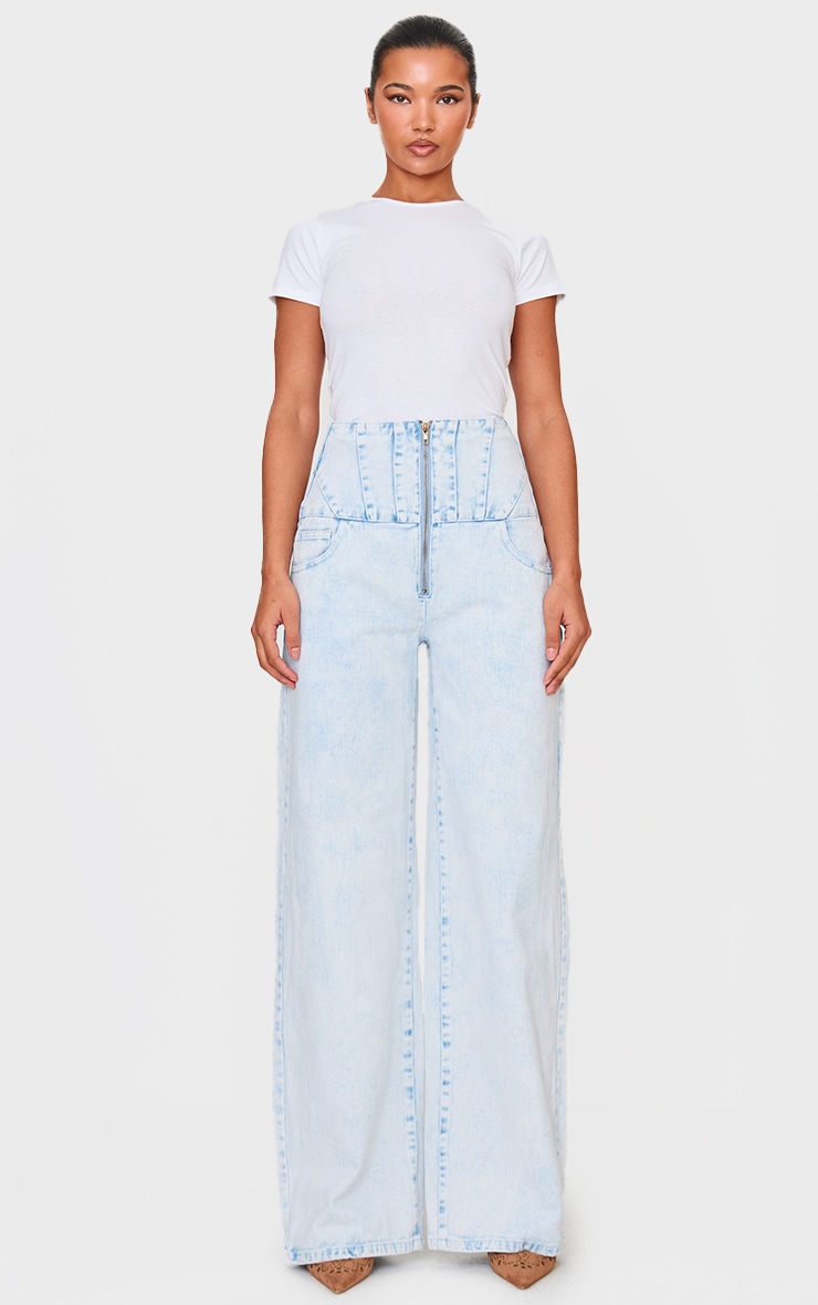 Підніміть свій щоденний наряд на нову висоту з цими світло-блакитними джинсами з корсетом на талії з тонкими тонкими швами. Виготовлений зі світло-блакитного джинсового матеріалу кислотного кольору з деталями швів і корсетним дизайном на талії, як ви можете встояти? Носіть ці світло-блакитні джинси з білою футболкою та туфлями на підборах, щоб отримати всі бали за стиль. Довжина приблизно 86,5 см/34 дюйма (на основі розміру вибірки UK 8) На моделі одягнено розмір UK 8/ EU 36/ AUS 8/ US 4. Зріст моделі — 5 футів 6 дюймів. Категорія: Джинсовий одяг. Тип продукту: Джинси. PlainOccasion: День