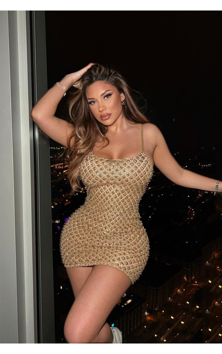 Захоплива мінісукня з регульованими тонкими бретелями. Повністю на підкладці та із прихованою блискавкою ззаду для ідеальної посадки. Вбрання прикрашене блискітками, що створюють чарівне сяйво. Зверніть увагу: через особливості нанесення блискіток, можливе їх осипання. Склад: основа – 100% нейлон; підкладка – 95% нейлон, 5% спандекс. Імпортний виріб.