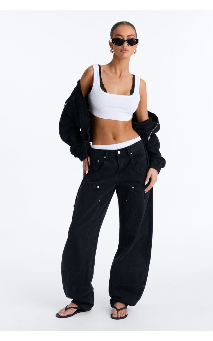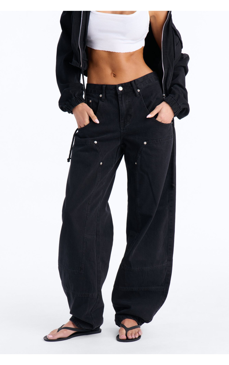 Сучасні джинси з утилітарними деталями, що додають образу функціональності та міського шику. Їхній крій враховує останні модні тенденції, а високоякісна тканина гарантує довговічність та комфорт. Чудовий вибір для створення стильних повсякденних образів.
