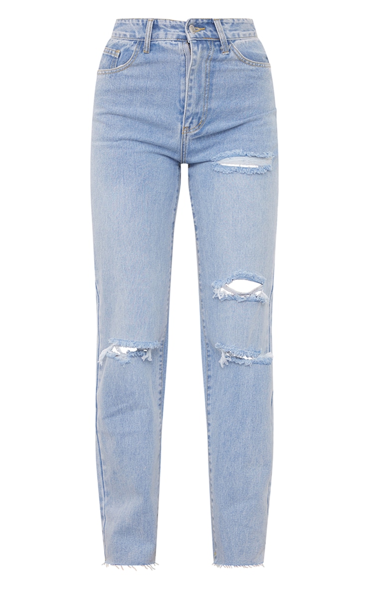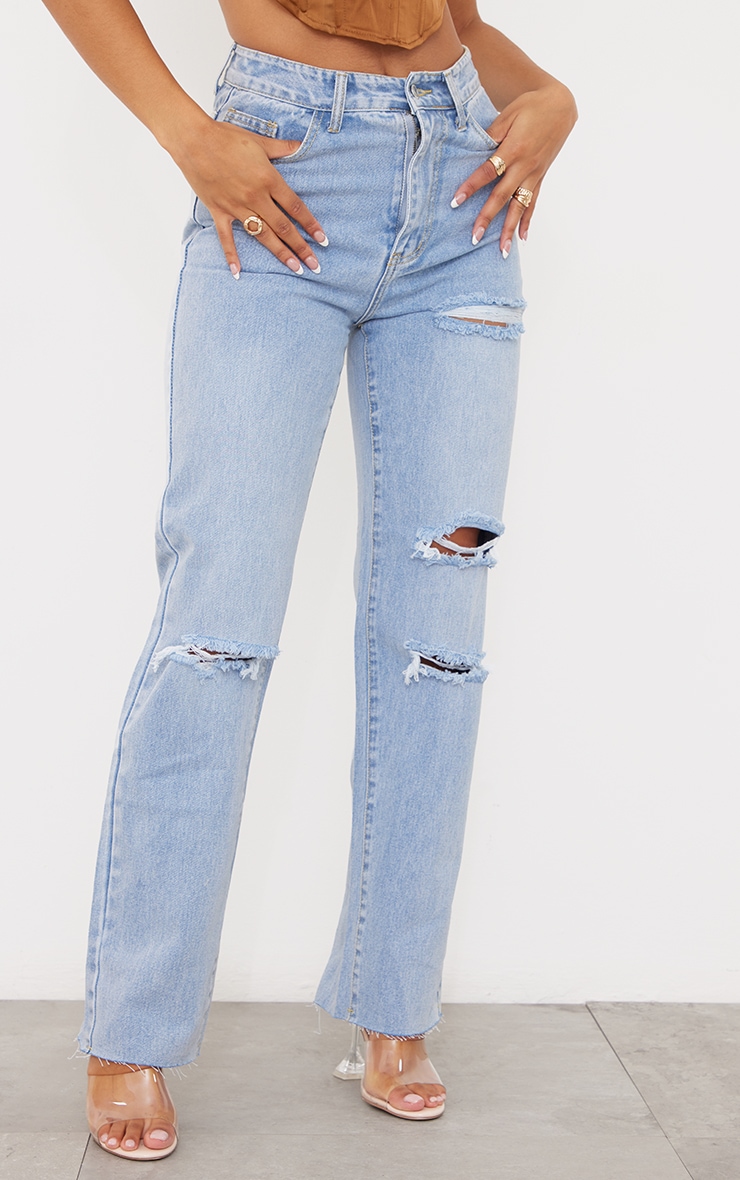 Світло-блакитні рвані довгі прямі джинси PRETTYLITTLETHING