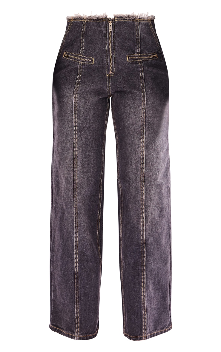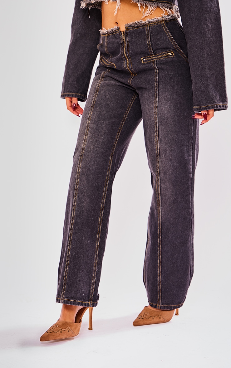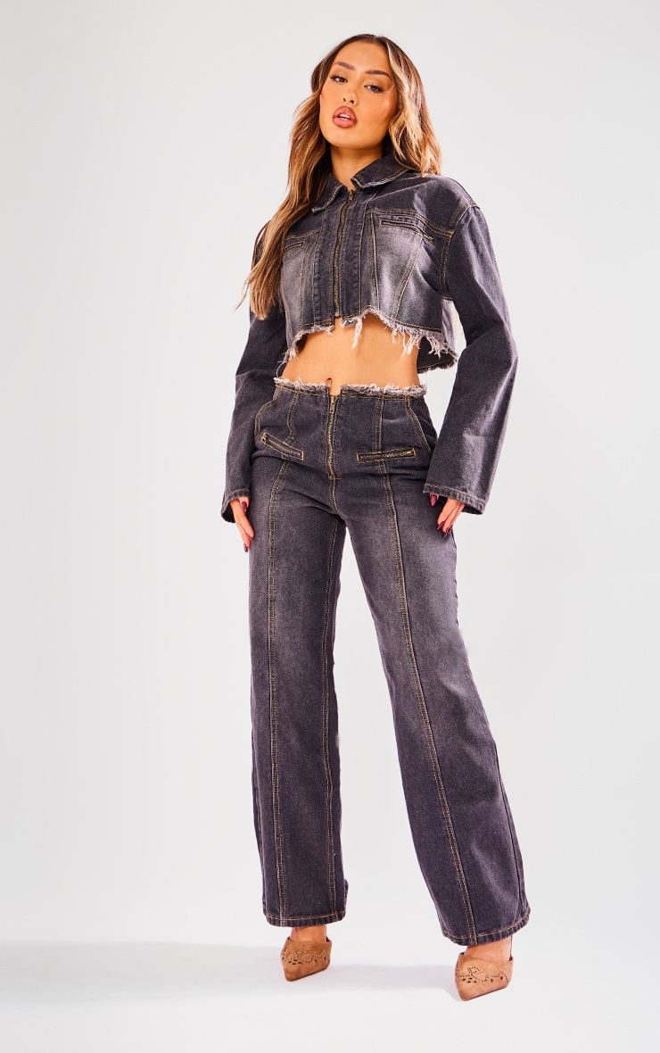 Маленькі брудно-сірі прямі джинси з необробленим подолом