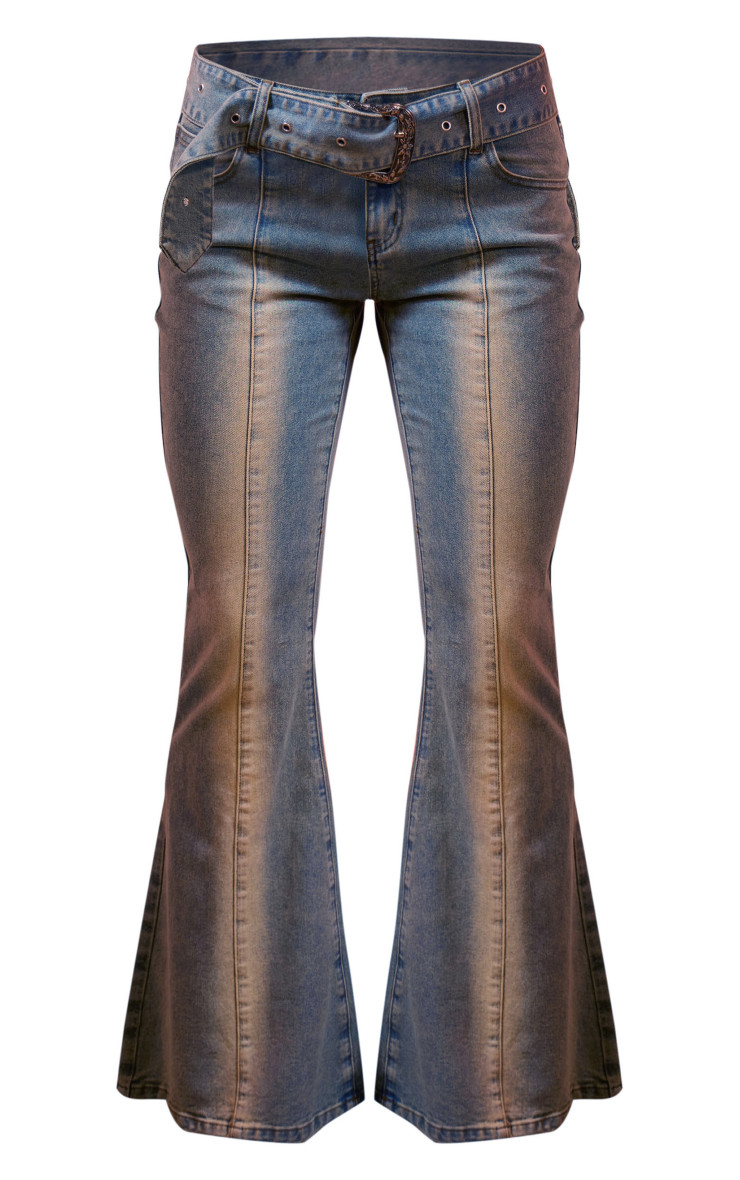 Вінтажні джинси-кльош у стилі західного стилю з пряжкою та пряжкою