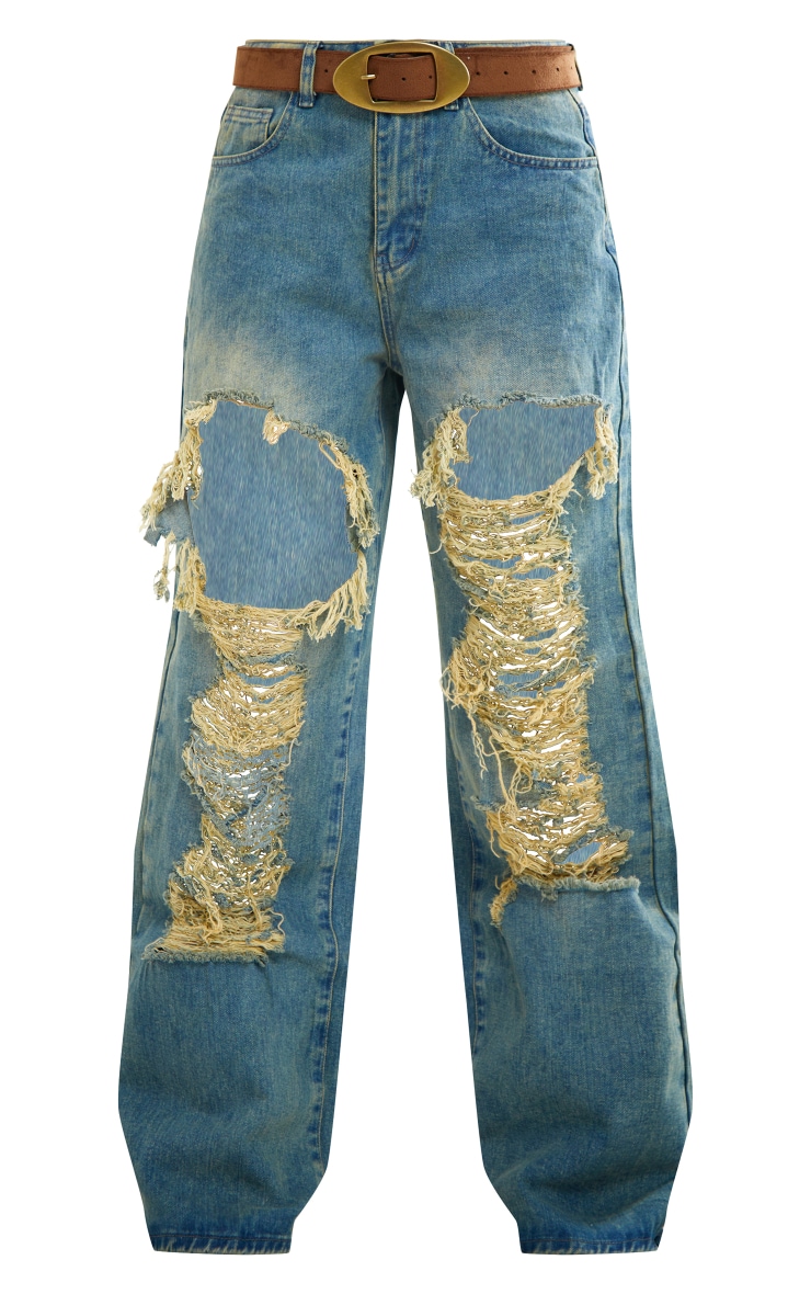 Прямі джинси Indigo Vintage Wash Extreme Rip Front