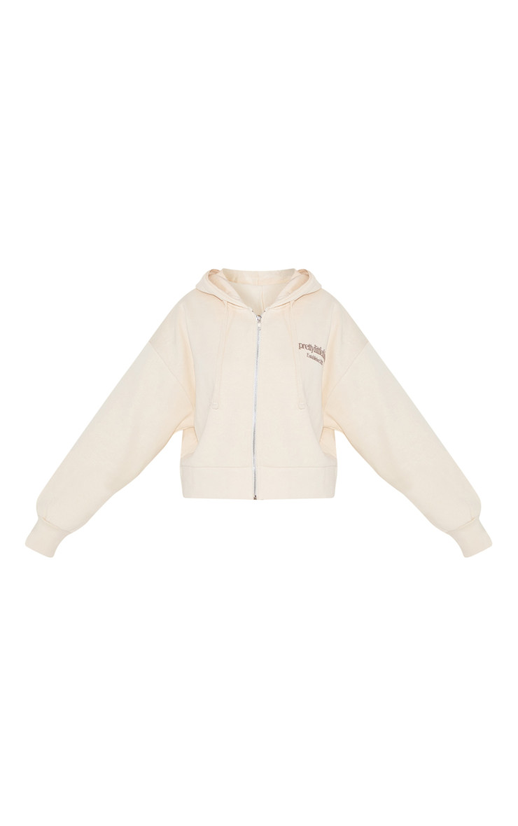 PrettyLittlething Petite Cream Premium Print Zip Front