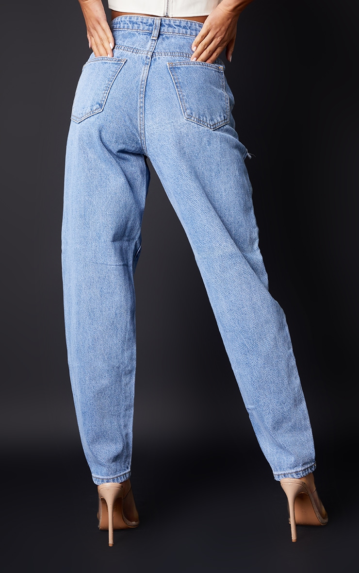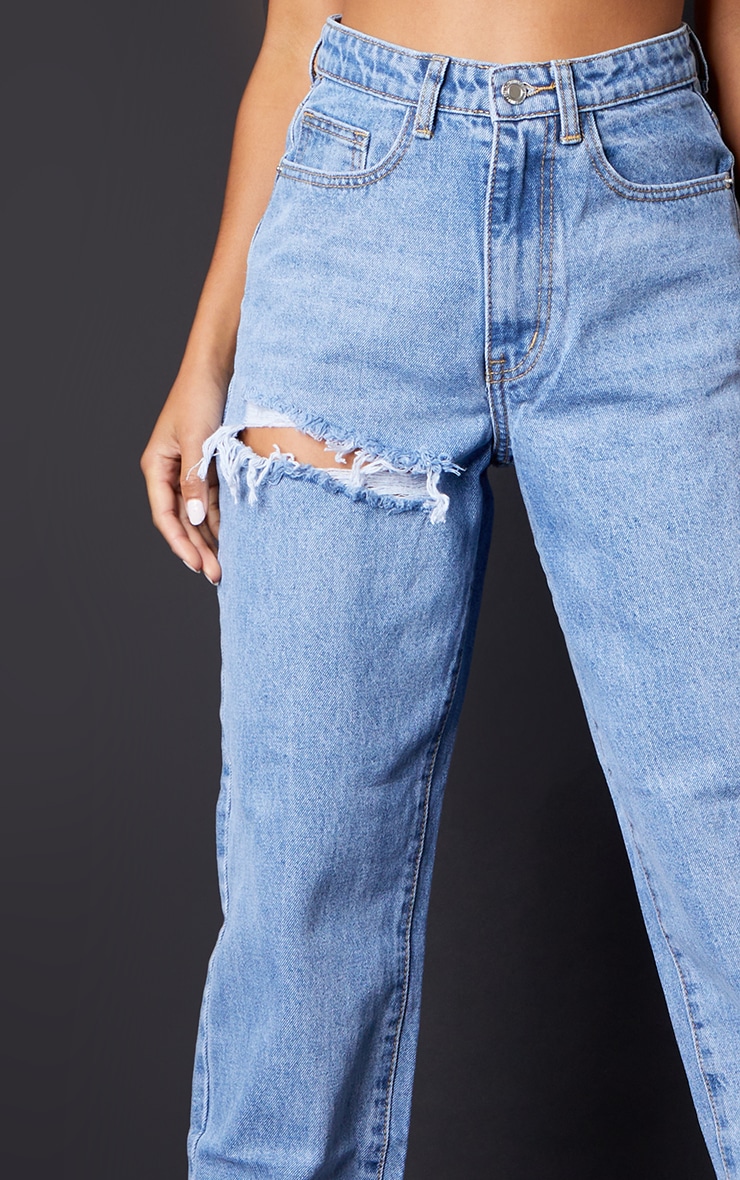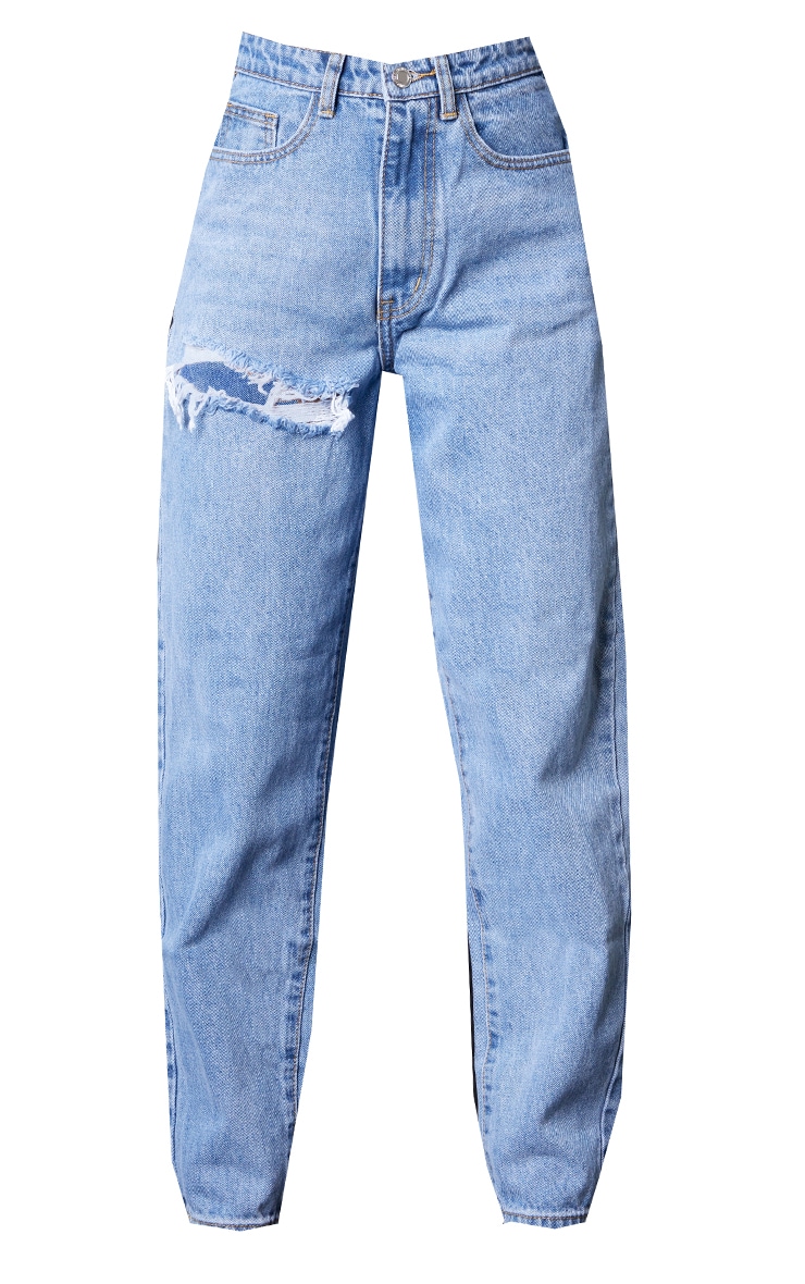 Світло-блакитні рвані мом джинси PRETTYLITTLETHING Petite